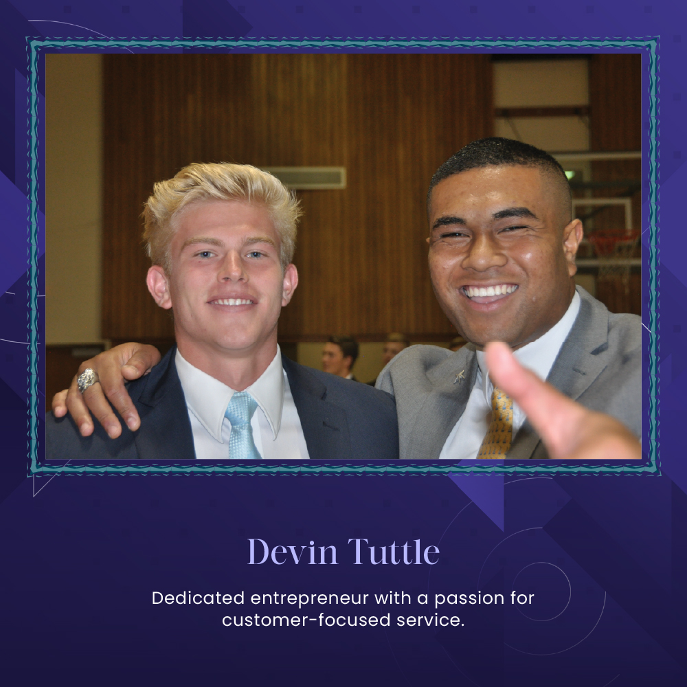 Before starting Tutts, Devin worked as a Customer Service Representative, earning recognition as a top salesperson in Utah while helping train others and building client relationships. While in high school, he worked at Tucanos Brazilian Grill and Swig and completed his first lawn aeration job at the age of 15, demonstrating his early interest in business.